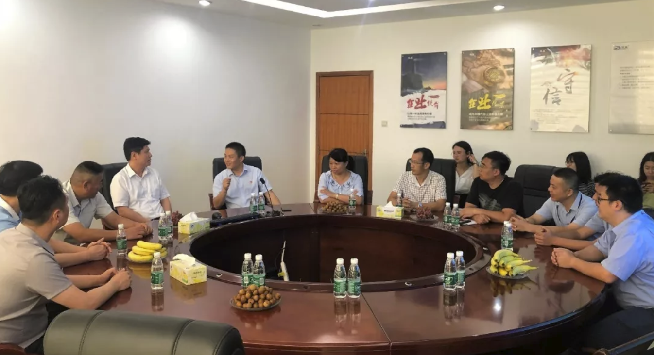 在公司會議室,工會主席李榮鋒向總工會慰問組介紹德展集團防暑降溫措施,企業生產和工會工作開展情況,以及職工的生產活動和高溫勞動防護措施情況,并對上級工會的關心和支持表示感謝。