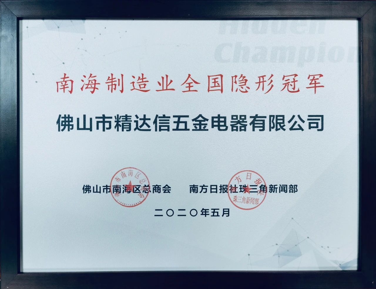 5月19日上午,佛山市第二批南海制造業(yè)全國隱形冠軍企業(yè)授牌大會在丹灶舉行。經(jīng)征集報名、實地調(diào)研、評審委員會評審等程序,精達(dá)信憑借空調(diào)壓縮機領(lǐng)域認(rèn)定為第二批南海制造業(yè)全國隱形冠軍企業(yè)之一。