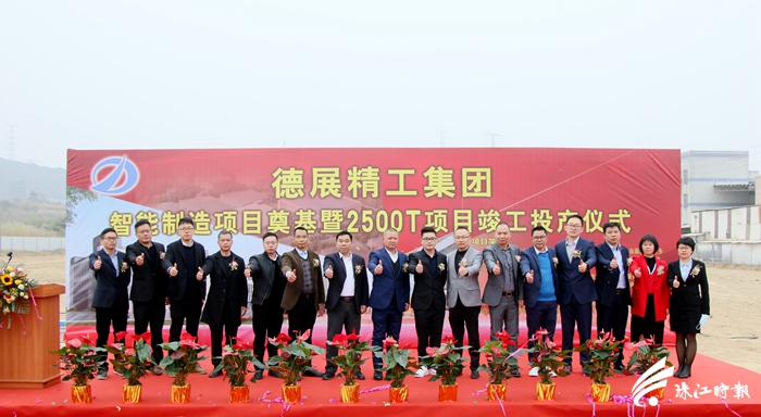 領(lǐng)導(dǎo)嘉賓為德展精工集團(tuán)智能制造項(xiàng)目、2500T項(xiàng)目竣工投產(chǎn)點(diǎn)贊。