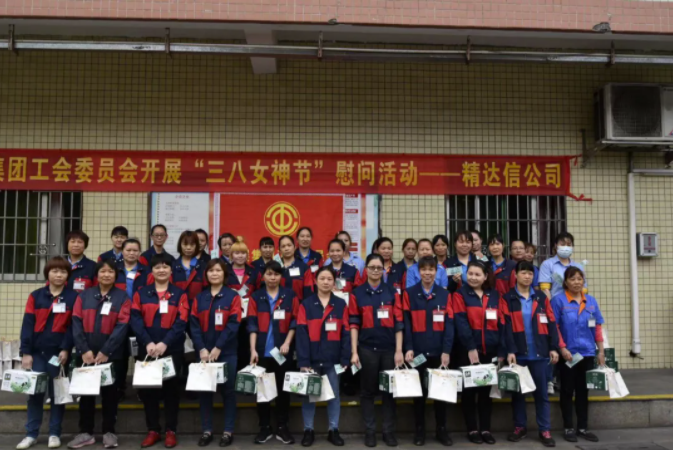 女員工齊聚一堂,欣喜接過工會送上的禮品及慰問金。大家臉上流露著燦爛的笑容,紛紛對集團準備的驚喜點贊。